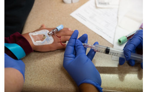 A care team member will take blood samples to measure the amount of glucose in your child’s blood over time.